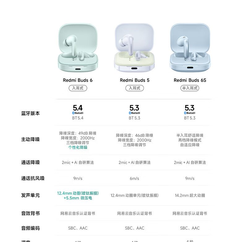 商品名称:小米 蓝牙耳机 Redmi Buds 6