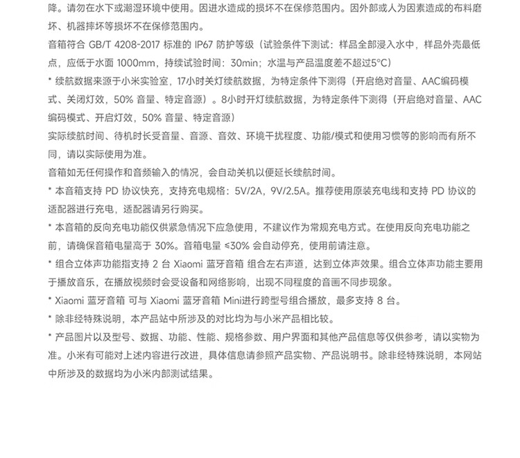 商品名称:小米 Xiaomi 蓝牙音箱 户外蓝牙音响
