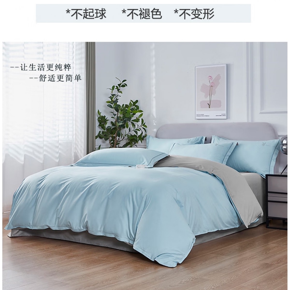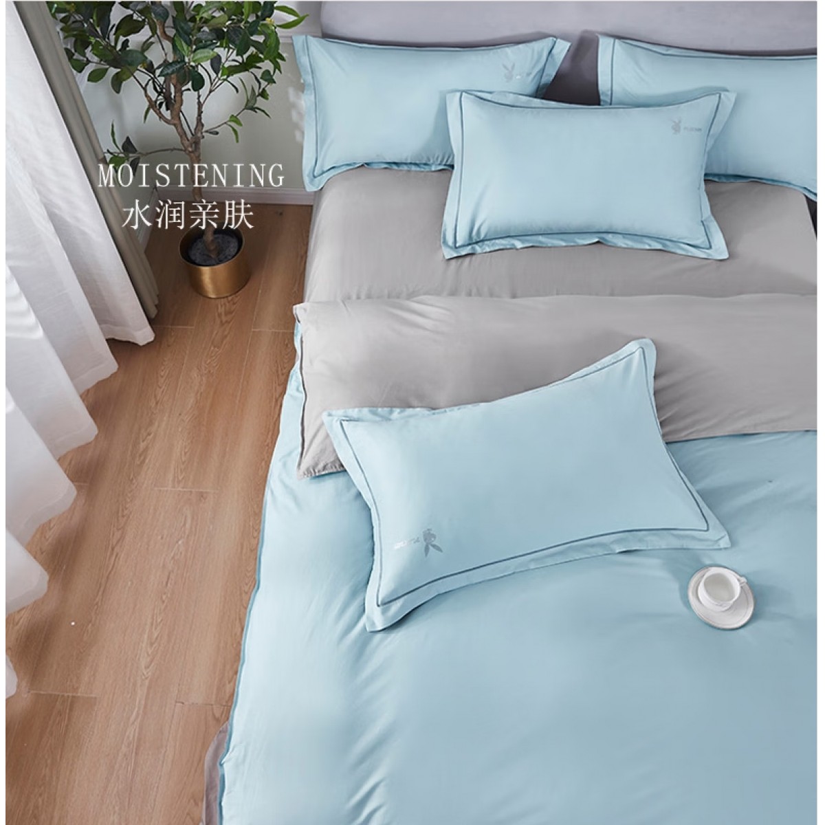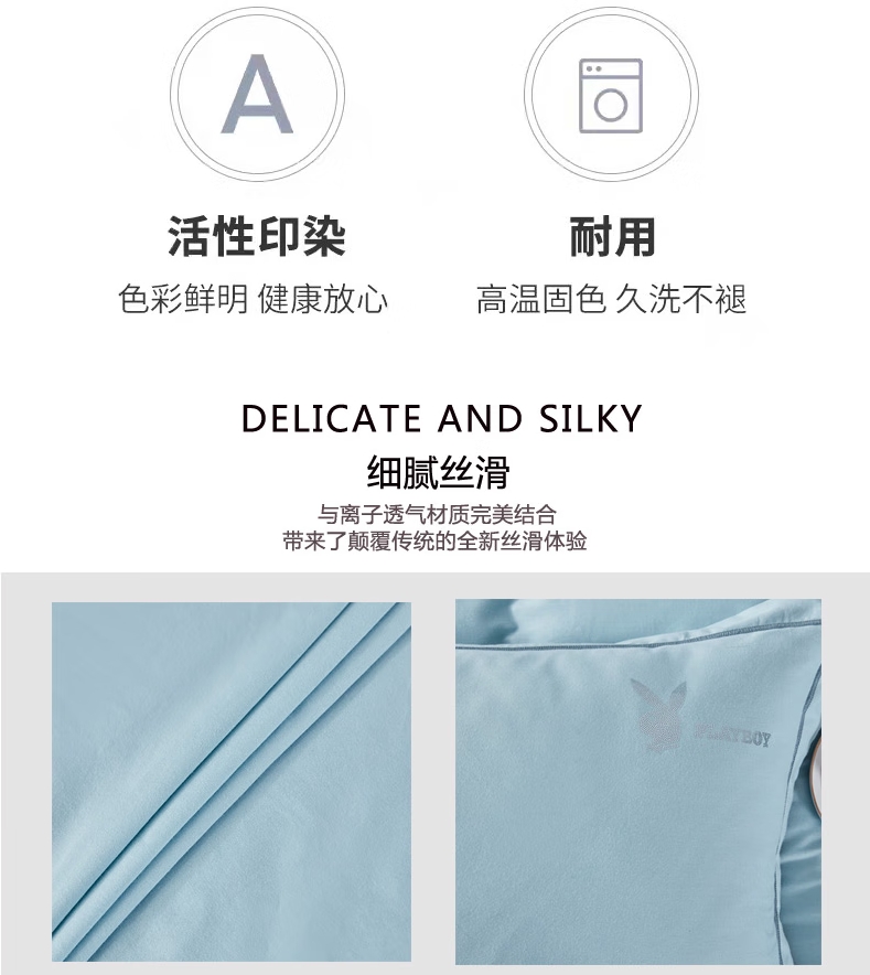 花花公子长绒棉四件套-天青