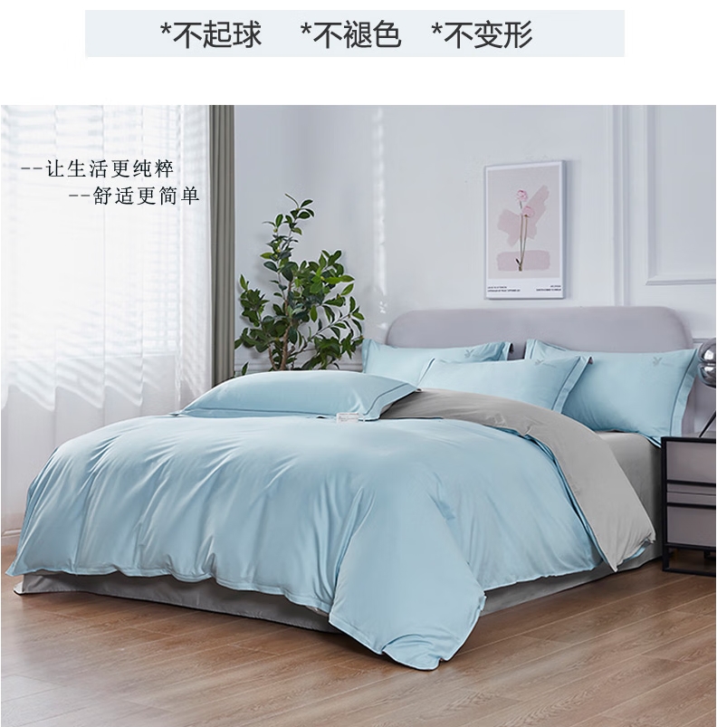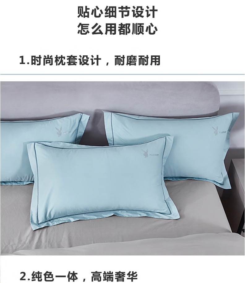 商品名称:花花公子 长绒棉四件套-天青 200cm*230cm H4HX24