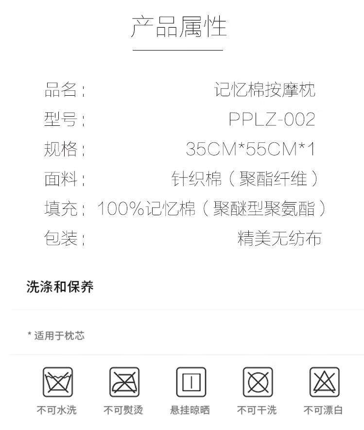 商品名称:PIERTE POLO 皮尔特保罗 记忆棉按摩枕 35CM*55CM PPLZ-002