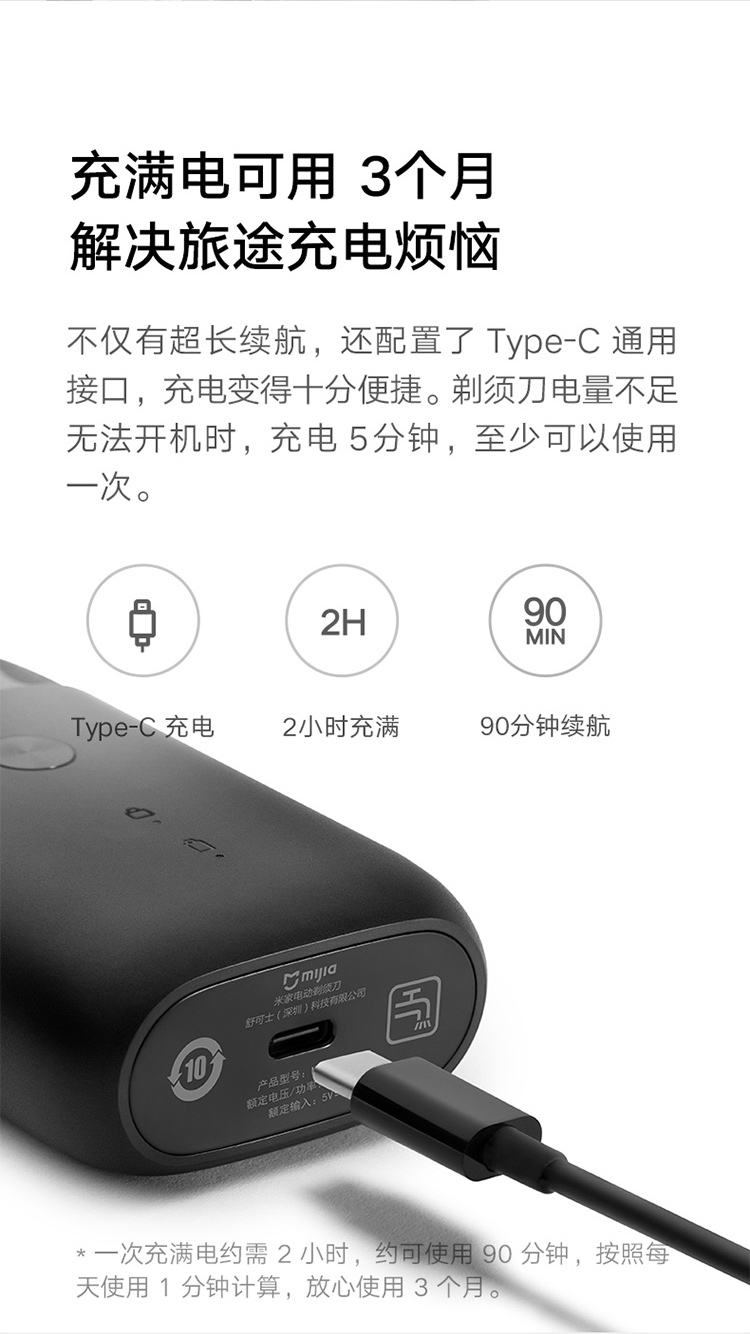 包装清单 :剃须刀*1,防尘盖*1,type-c充电线*1,说明书*1,收纳袋*1