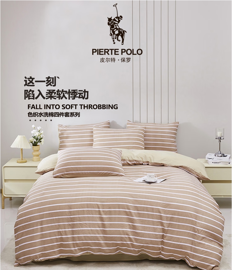 PIERTE POLO 皮尔特保罗 色织水洗四件套-条纹咖 200cm*230cm POLOS-2322