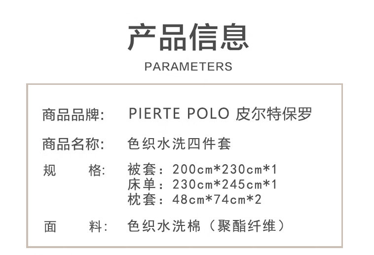 商品名称:PIERTE POLO 皮尔特保罗 色织水洗四件套-利奥 200cm*230cm POLOS-2423