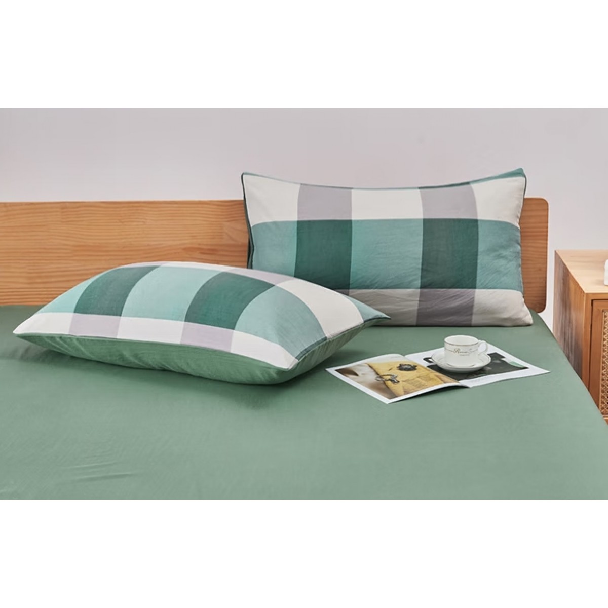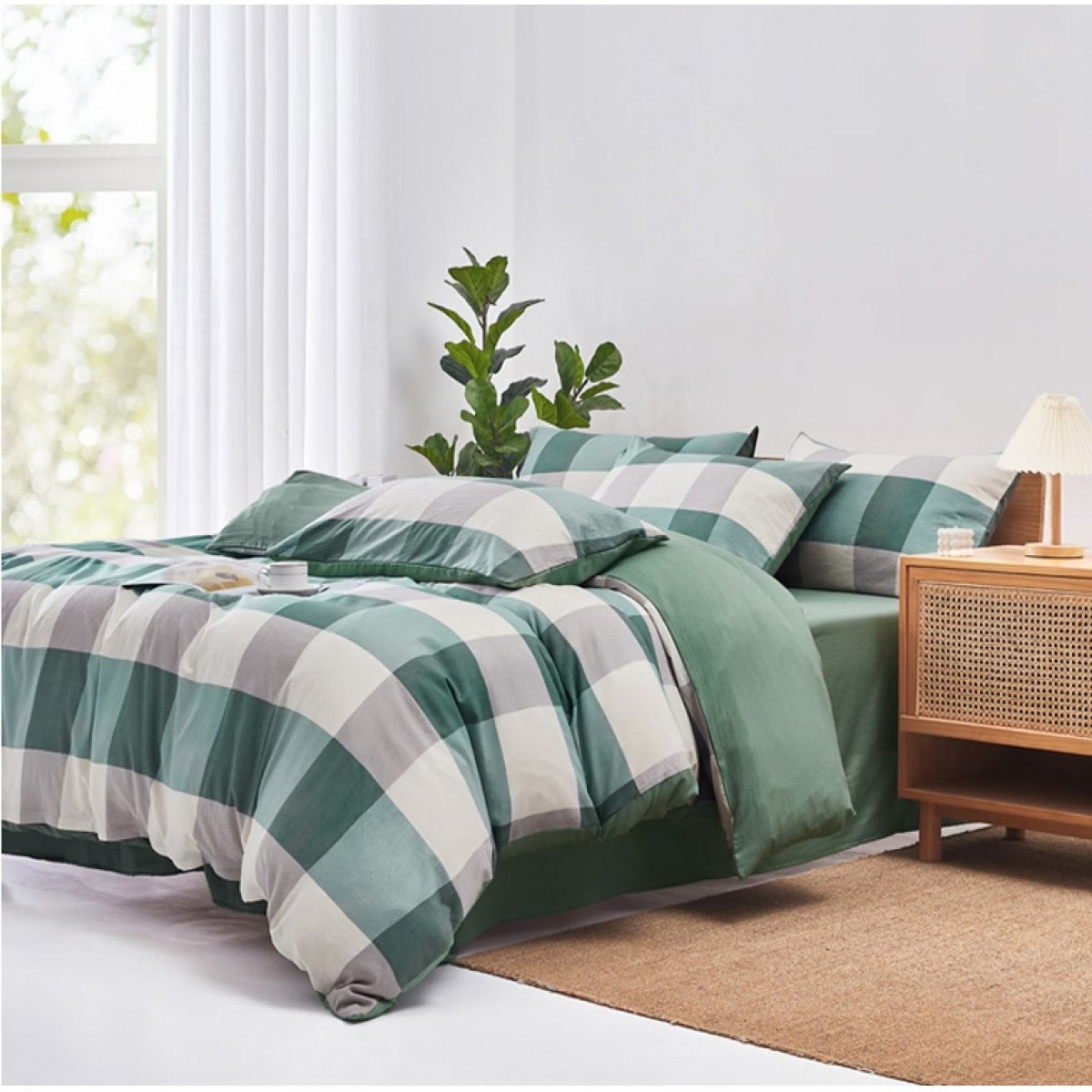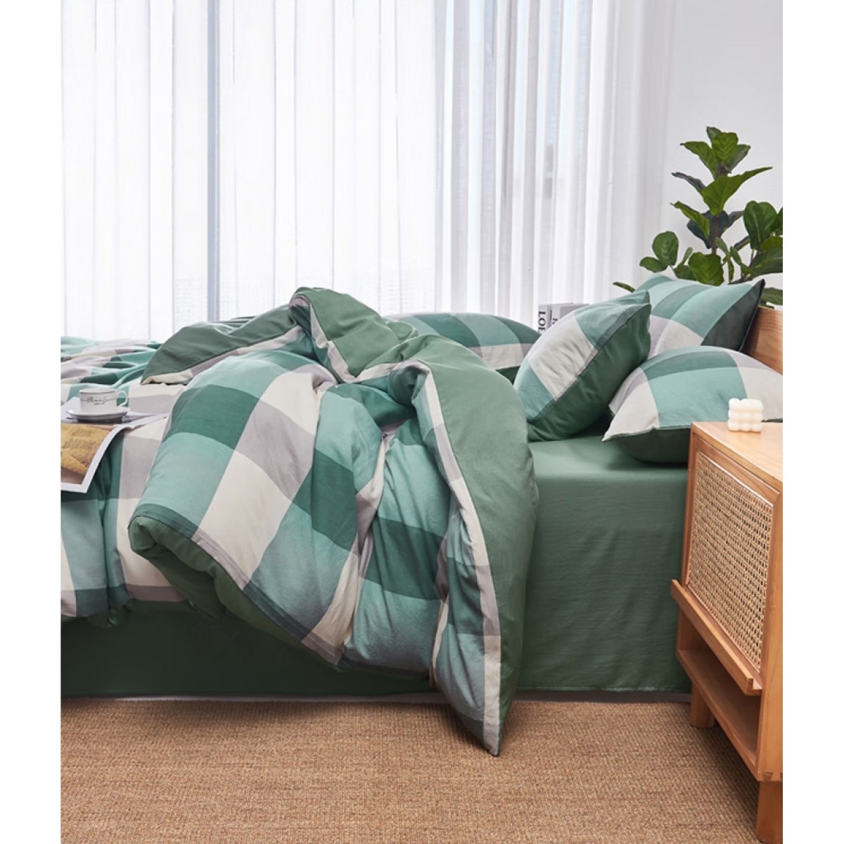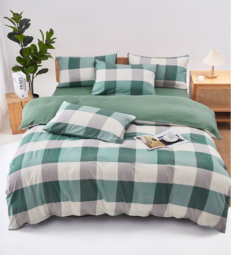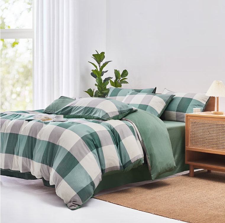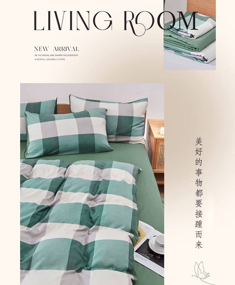 色织水洗四件套-军绿大格