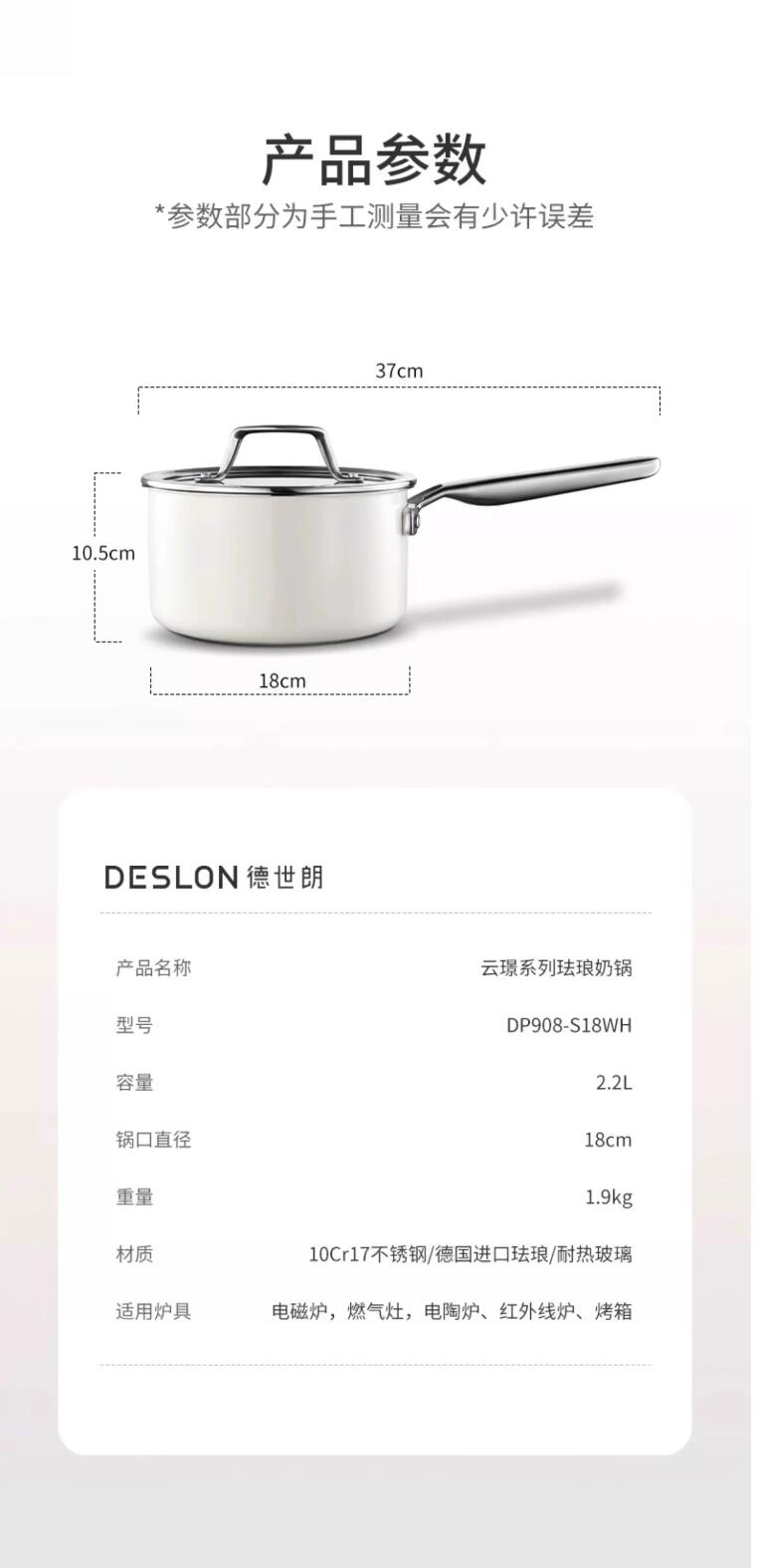 商品名称:德世朗(DESLON) 云璟系列珐琅奶锅18cm DP908-S18