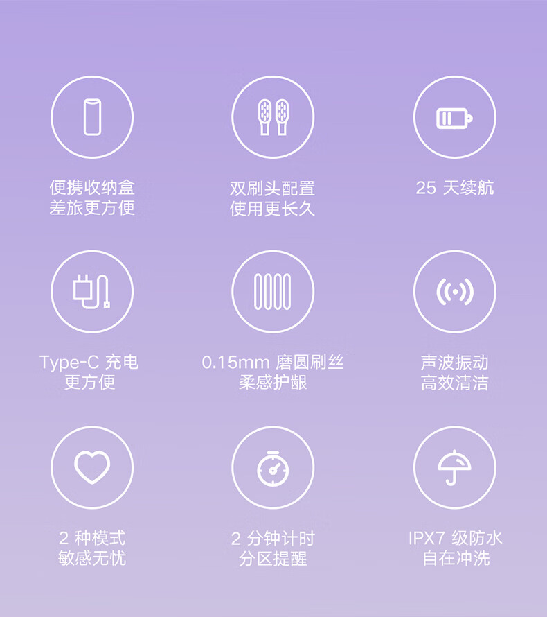 刷柄×1,刷头×2,收纳盒×1,产品说明书×1,电源线×1
