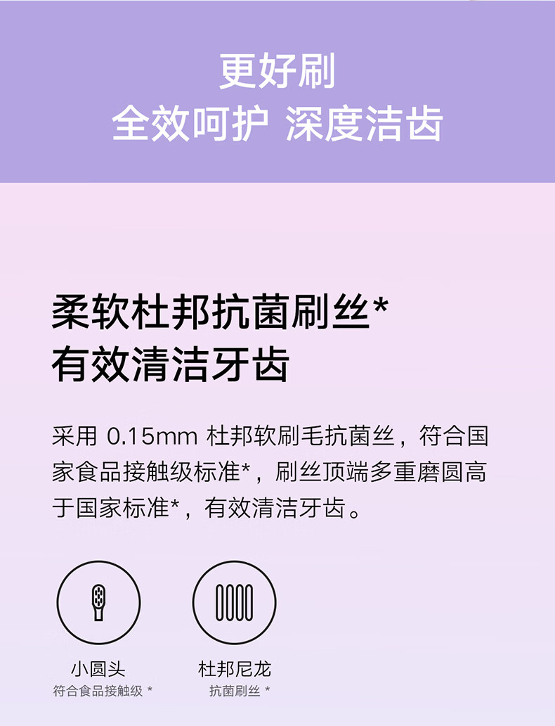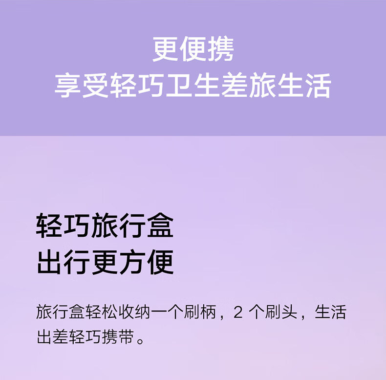 包装清单 :刷柄×1,刷头×2,收纳盒×1,产品说明书×1,电源线×1