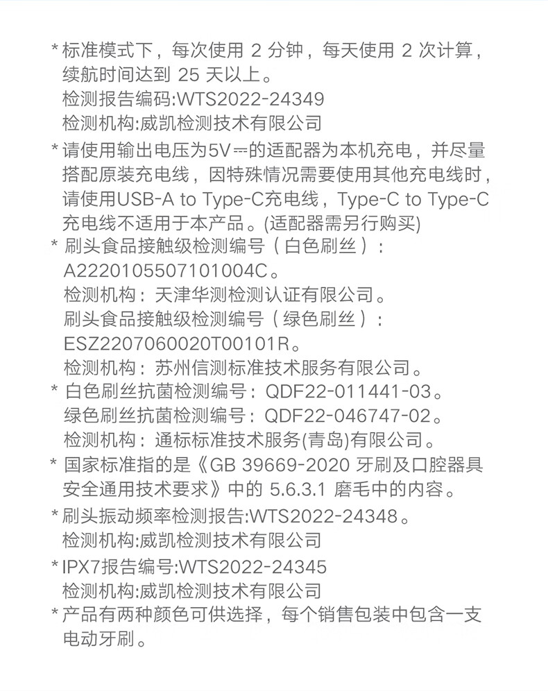 商品名称:小米 电动牙刷 T200C