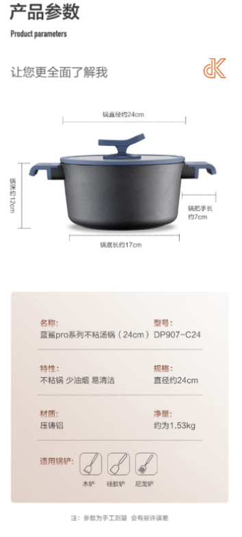 商品名称:德世朗(DESLON) 蓝鲨pro系列不粘汤锅 24cm DP907-C24