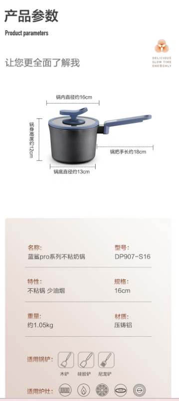 商品名称:德世朗(DESLON) 蓝鲨pro系列不粘奶锅 16cm DP907-S16