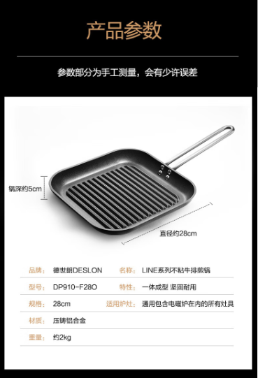 商品名称:德世朗(DESLON) LINE系列不粘牛排煎锅 28cm DP910-F28O