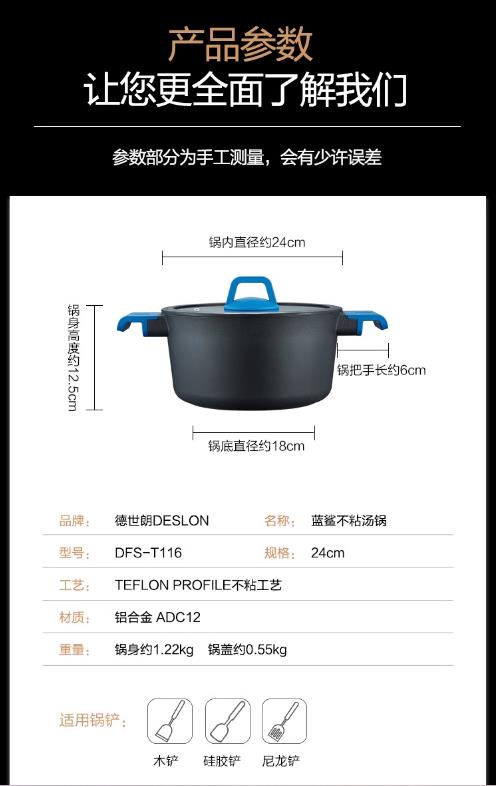 商品名称:德世朗(DESLON) 蓝鲨不粘汤锅 24cm DFS-T116