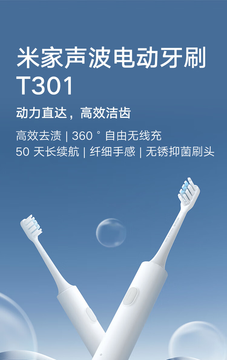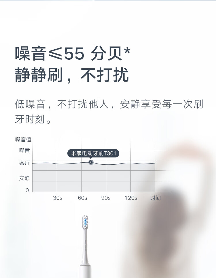 商品名称:小米 电动牙刷 声波震动 两档模式 T301