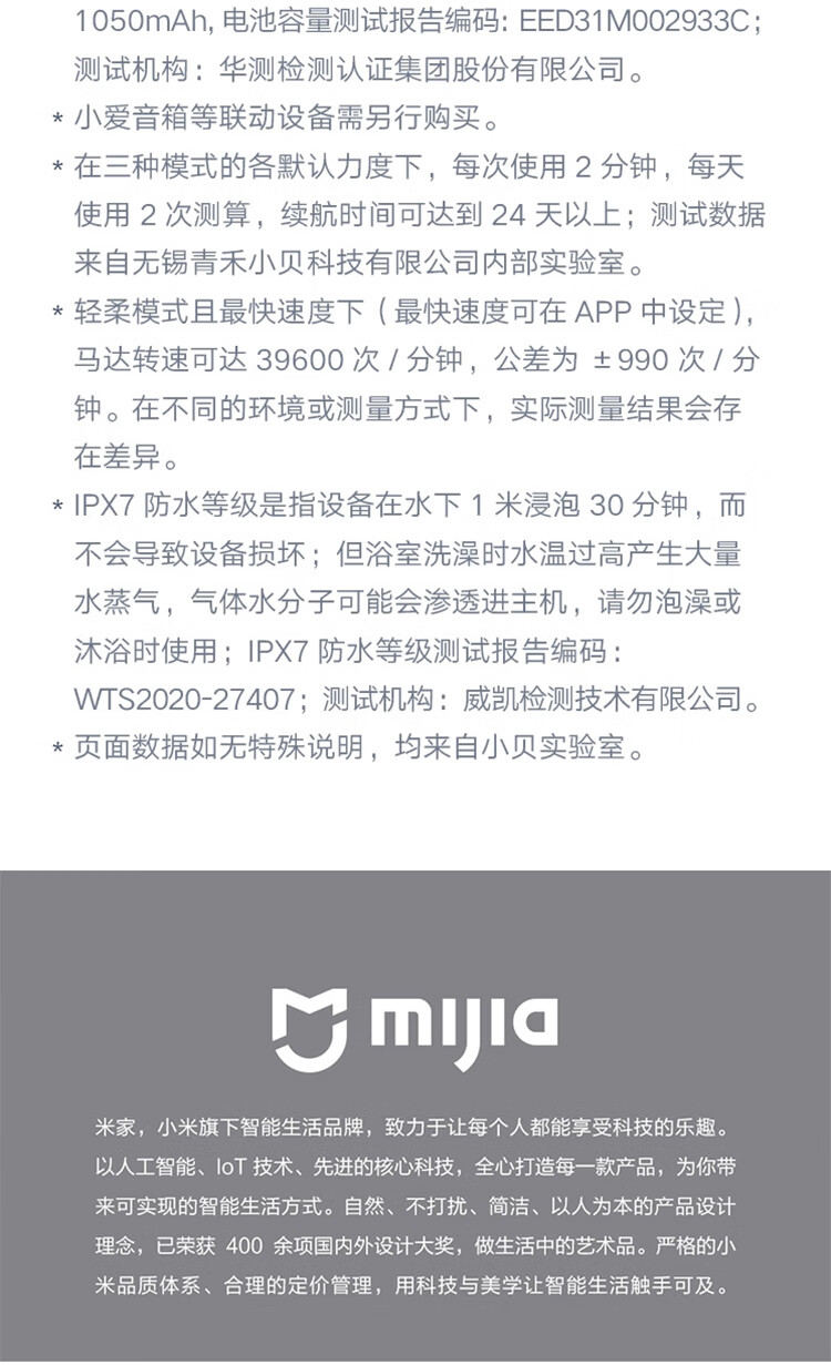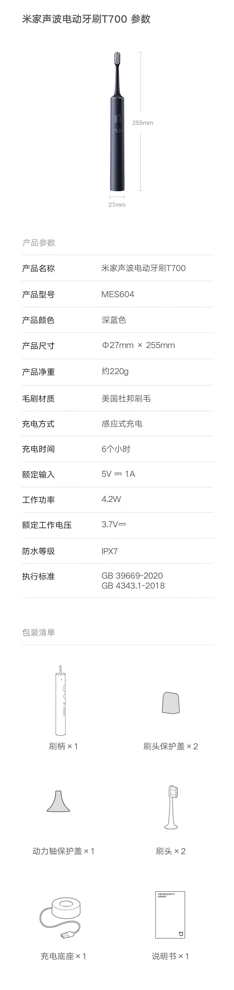 商品名称:小米 米家声波震动电动牙刷 智能LED T700