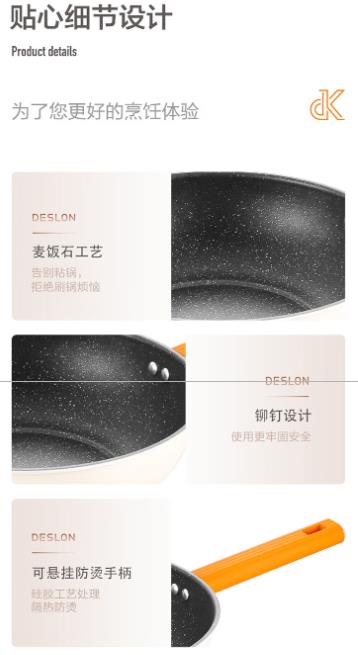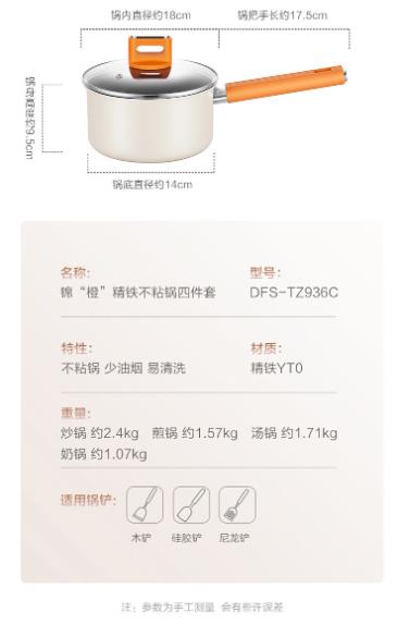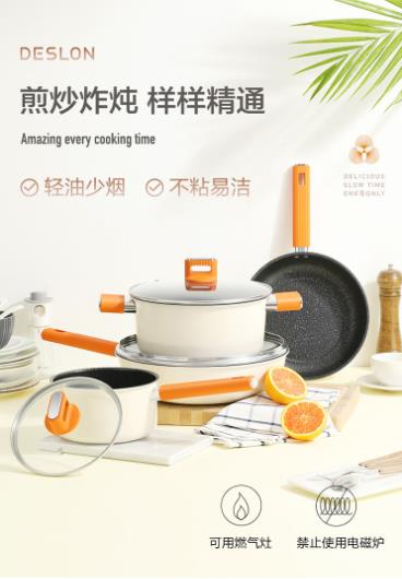 商品名称:德世朗(DESLON) 锦“橙”精铁不粘锅四件套 DFS-TZ936C