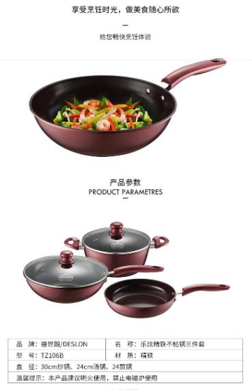 商品名称:德世朗(DESLON) 乐炫精铁不粘锅三件套 DFS-TZ106B
