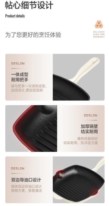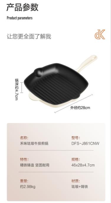 商品名称:德世朗(DESLON) 禾味珐琅牛排煎锅 28cm DFS-J861CNW