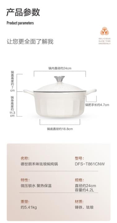 商品名称:德世朗(DESLON) 禾味珐琅焖炖锅 24cm DFS-T861CNW