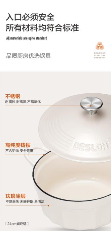德世朗(DESLON) 禾味珐琅焖炖锅 24cm DFS-T861CNW