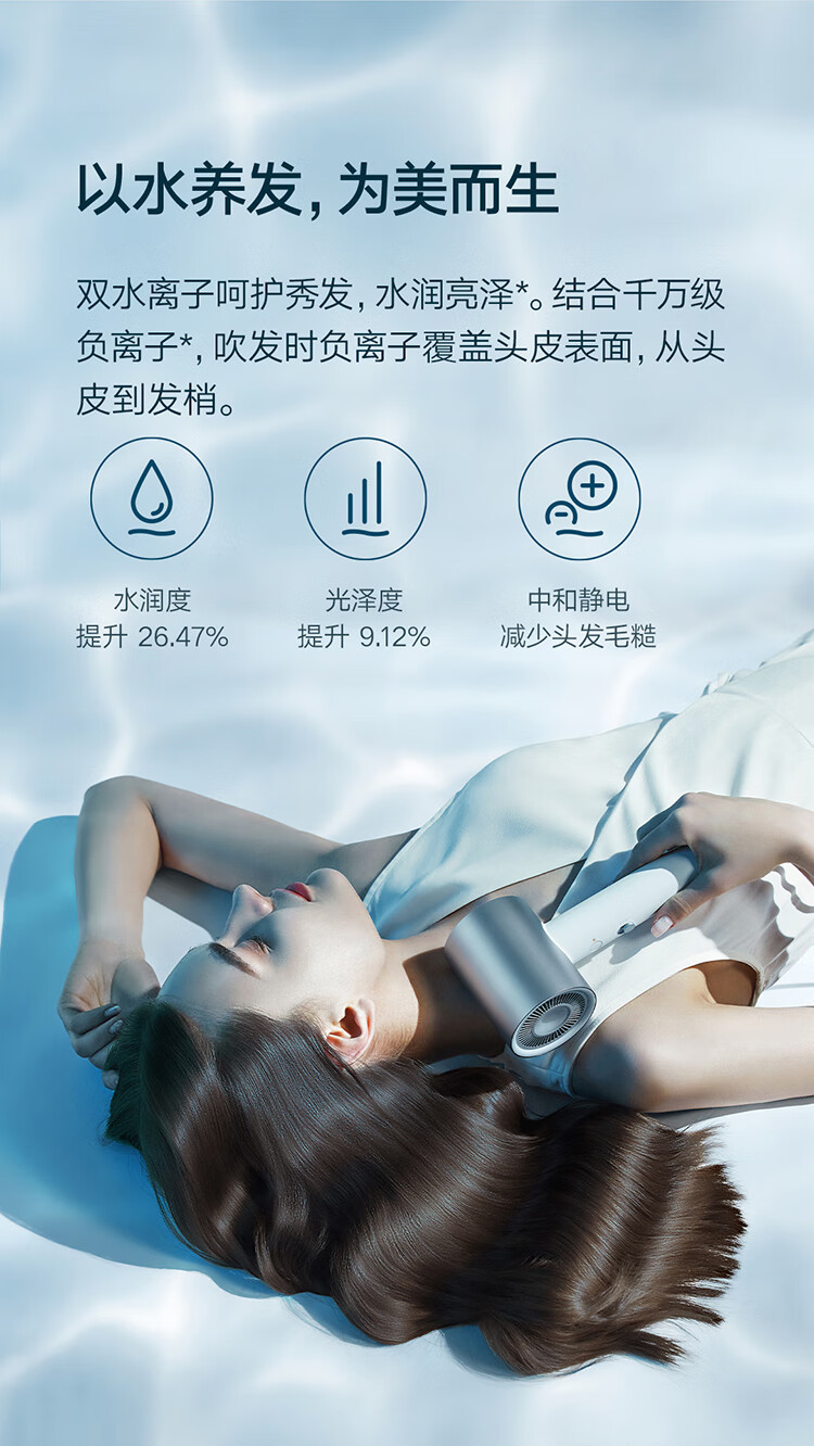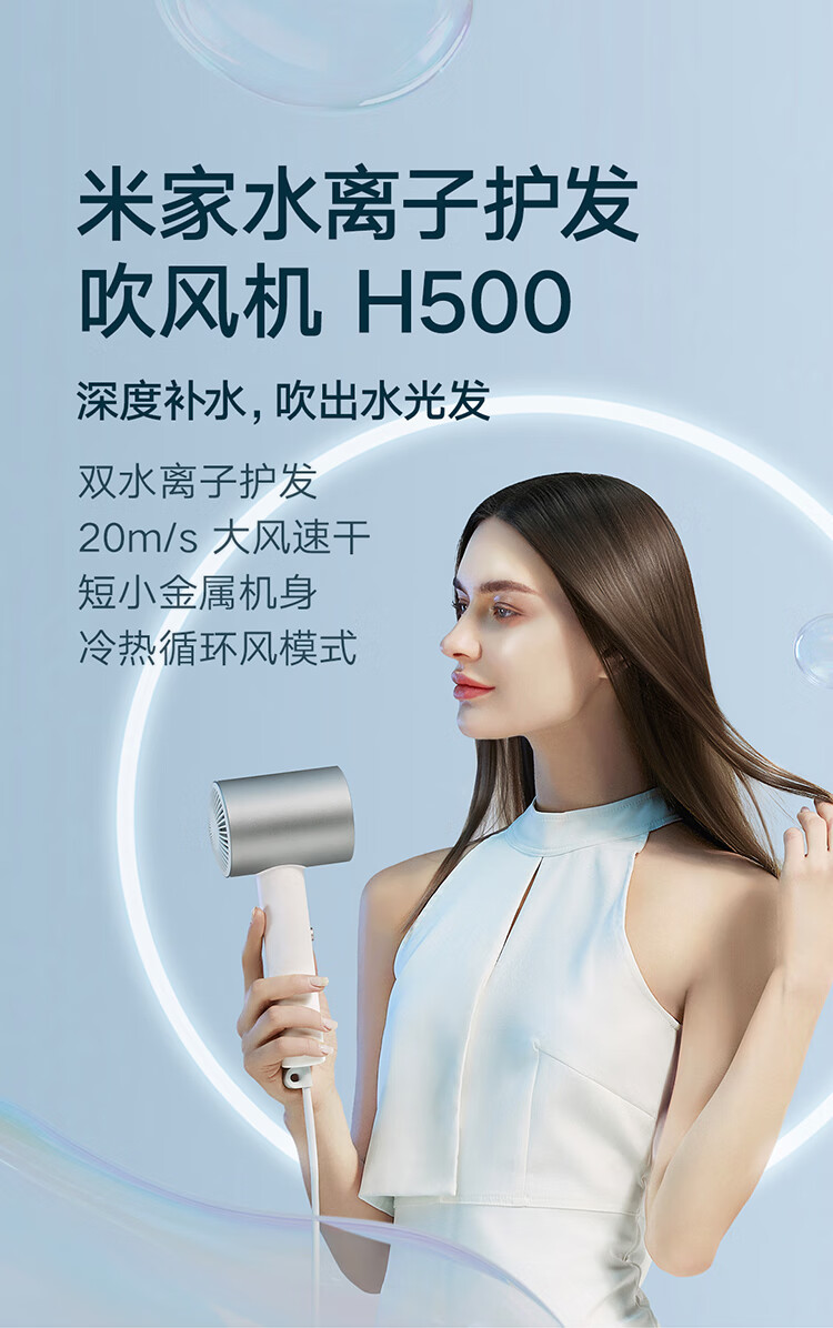 小米 水离子吹护机 双水离子护发 电吹风机 H500 1600w
