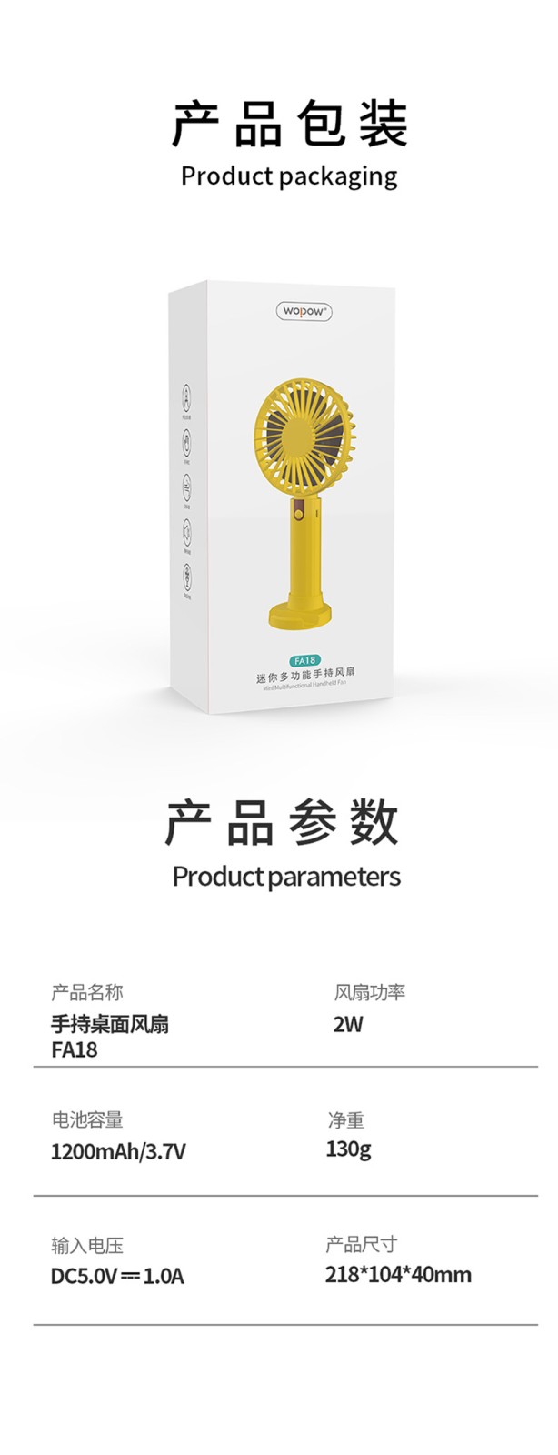 商品名称:沃品(WOPOW)迷你多功能手持小风扇 1200mAh FA18