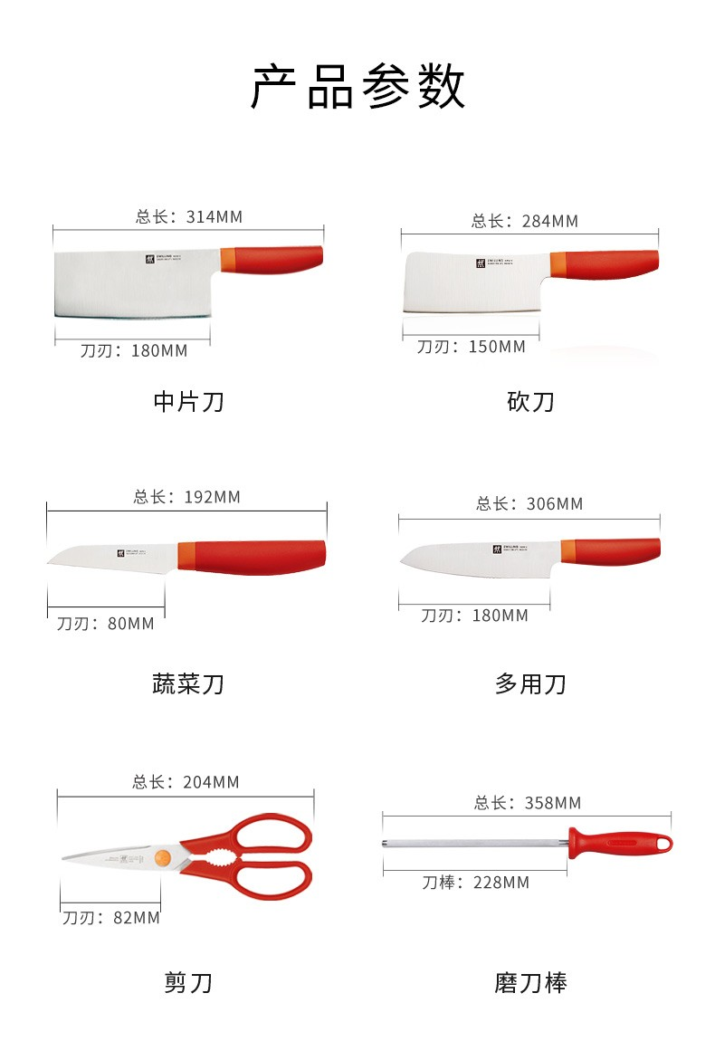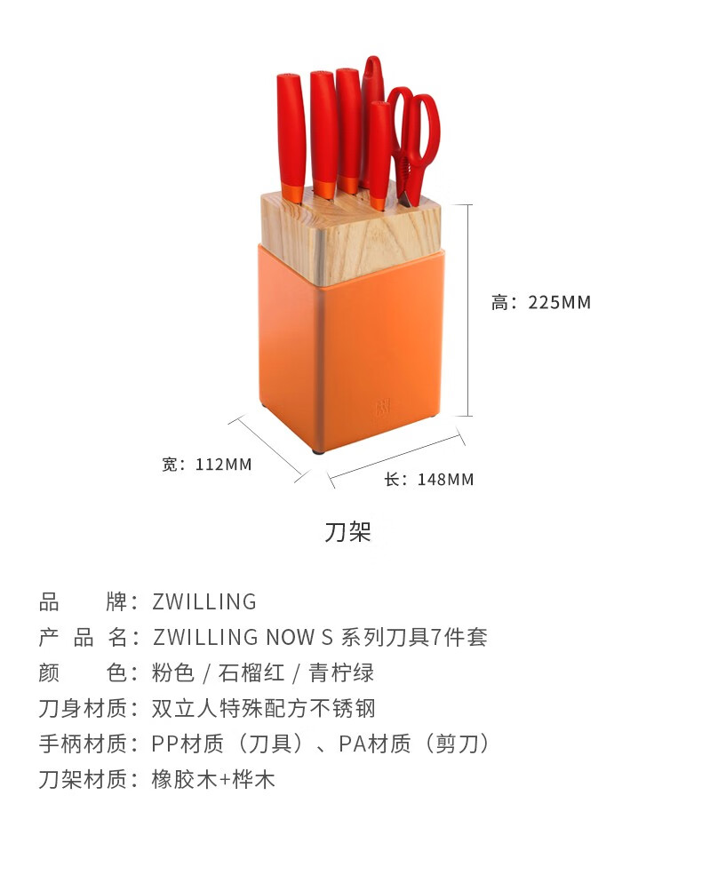 商品名称:德国双立人NOW S刀具套装7件套 54350-007-722(石榴红)/ 54370-007-722(青柠)// 54340-007-722(粉色)