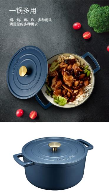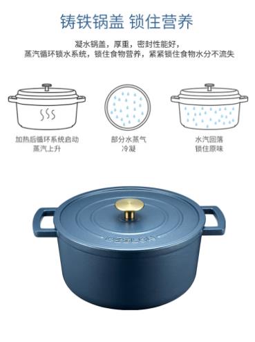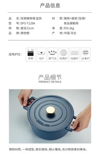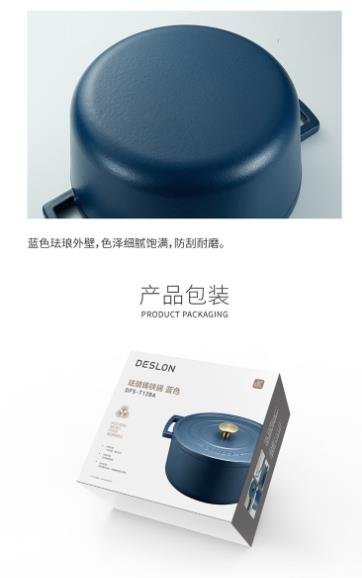 商品名称:德世朗(DESLON) 珐琅铸铁锅(蓝色) 21cm DFS-T128A
