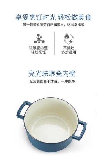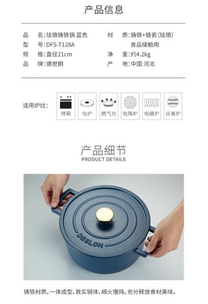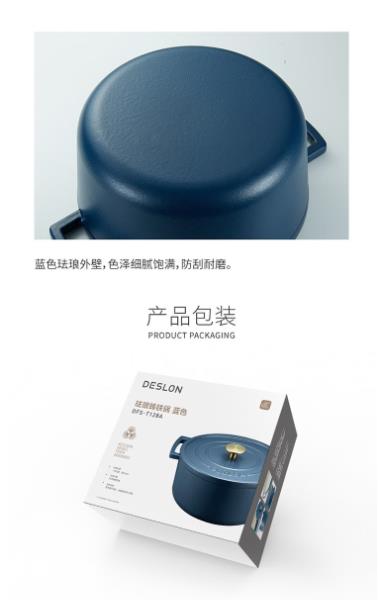 商品名称:德世朗(DESLON) 珐琅铸铁锅 蓝色 24cm DFS-T128B