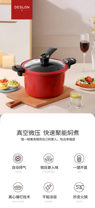 德世朗(DESLON) 麦饭石抗菌不粘微压营养锅 3.5L DFS-T832A