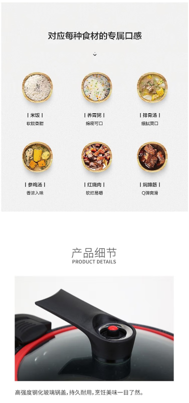 商品名称:德世朗(DESLON) 麦饭石抗菌不粘微压营养锅 3.5L DFS-T832A