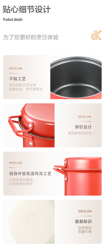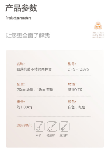 商品名称:德世朗(DESLON) 圆满抗菌不粘锅两件套 20cm汤锅 18cm煎锅 红色 DFS-TZ875-RD