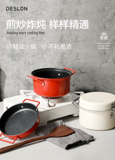 德世朗(DESLON) 圆满抗菌不粘锅两件套 20cm汤锅 18cm煎锅 红色 DFS-TZ875-RD