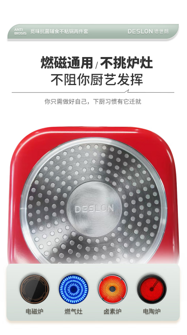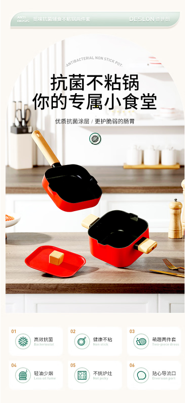 商品名称:德世朗(DESLON) 觅味抗菌辅食不粘锅两件套 汤锅-16cm 煎锅-16cm DFS-TZ893A