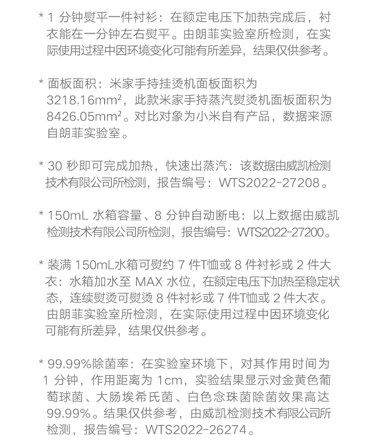 商品名称:小米 挂烫机 家用手持蒸汽熨烫机 150ml水箱