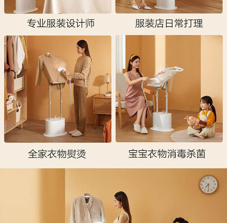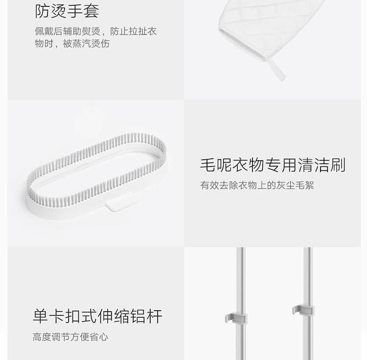 商品清单 :主机、毛呢衣物专用清洁刷、说明书、防烫手套、熨衣架、熨烫板、"伸缩杆x2"