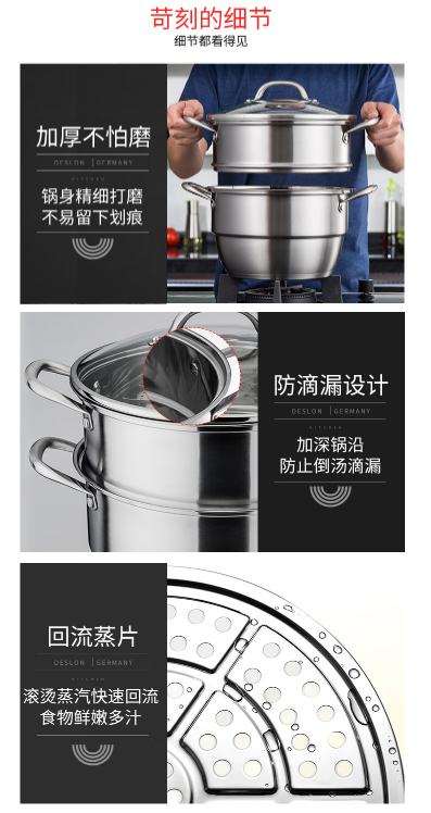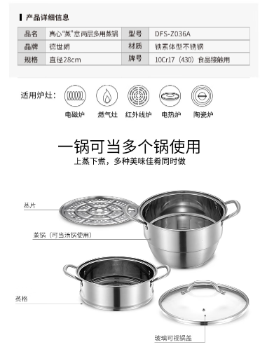 商品名称:德世朗(DESLON) 真心“蒸”意 两层多用蒸锅 28cm DFS-Z036A