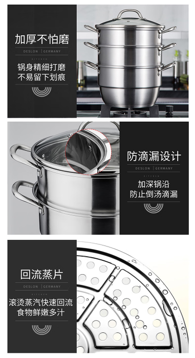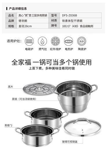 商品名称:德世朗(DESLON) 真心“蒸”意 三层多用蒸锅 28cm DFS-Z036B