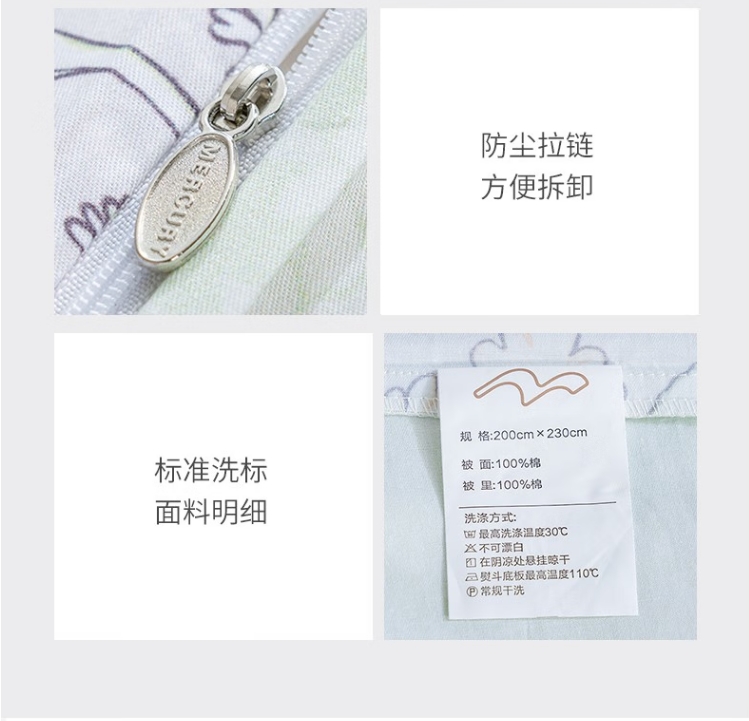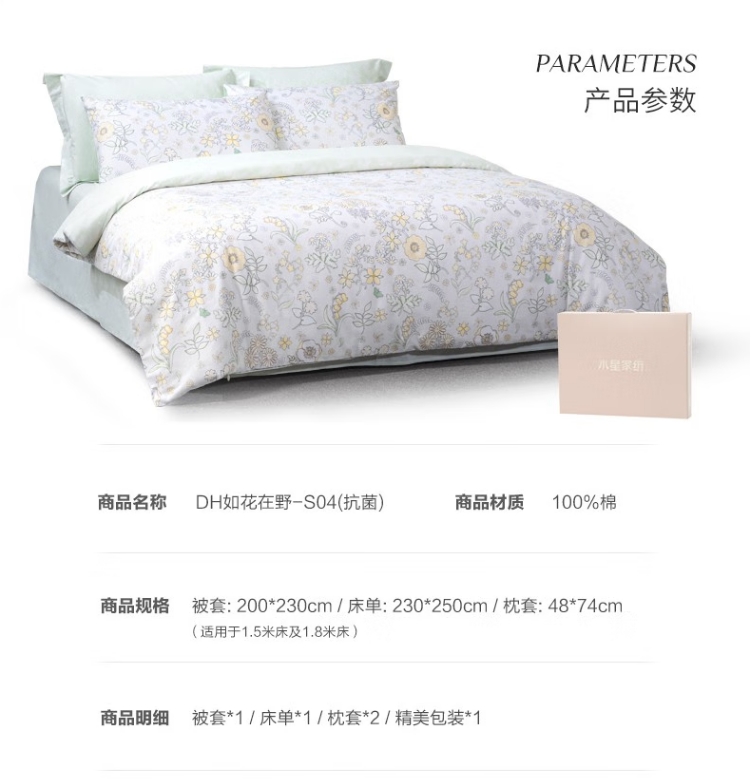 商品名称:水星家纺 花语风吟全棉抗菌四件套 1.5米床 200cm×230cm 127519