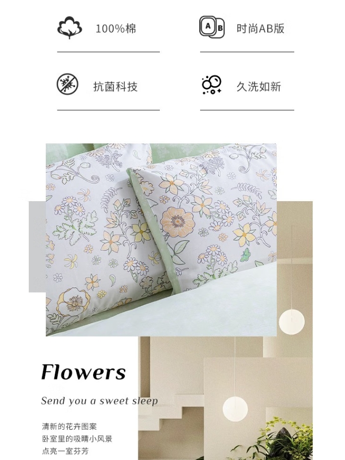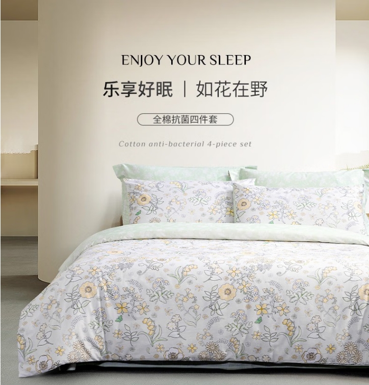 水星家纺 花语风吟全棉抗菌四件套 1.5米床 200cm×230cm 127519