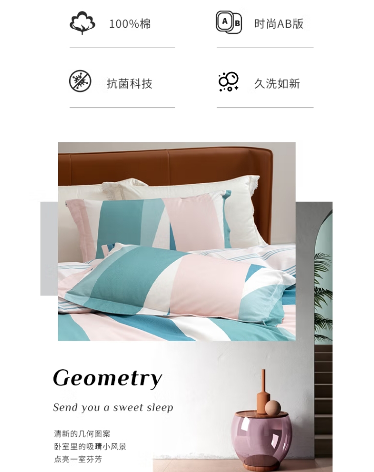 水星家纺 枕边话全棉抗菌四件套 1.8米床 220cm×240cm 127643