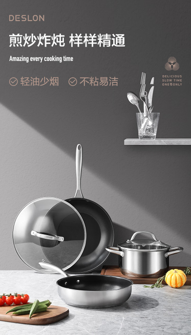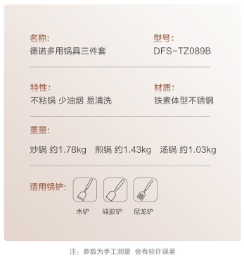 商品名称:德世朗(DESLON) 德诺多用锅具三件套 DFS-TZ089B