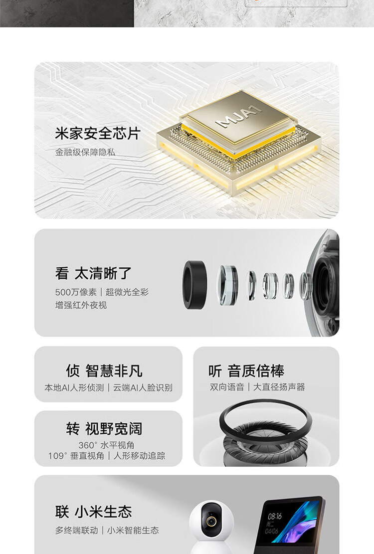 小米 智能摄像机3云台版 500万像素3K