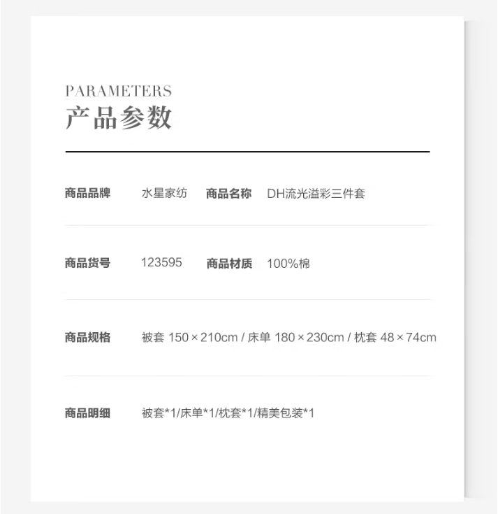 商品名称:水星家纺 流光溢彩全棉三件套 单人床适用 150cm×210cm 123595