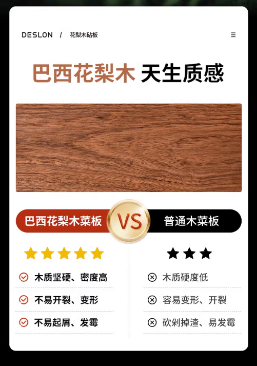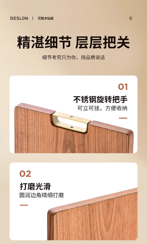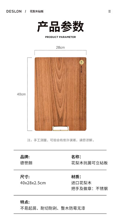 商品名称:德世朗(DESLON) 花梨木抗菌可立砧板 400*280*25mm DA704