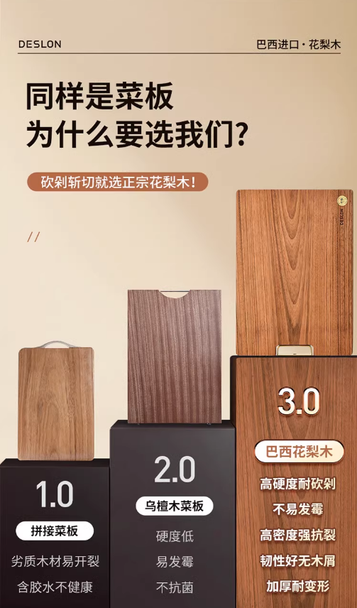 德世朗(DESLON) 花梨木抗菌可立砧板 400*280*25mm DA704