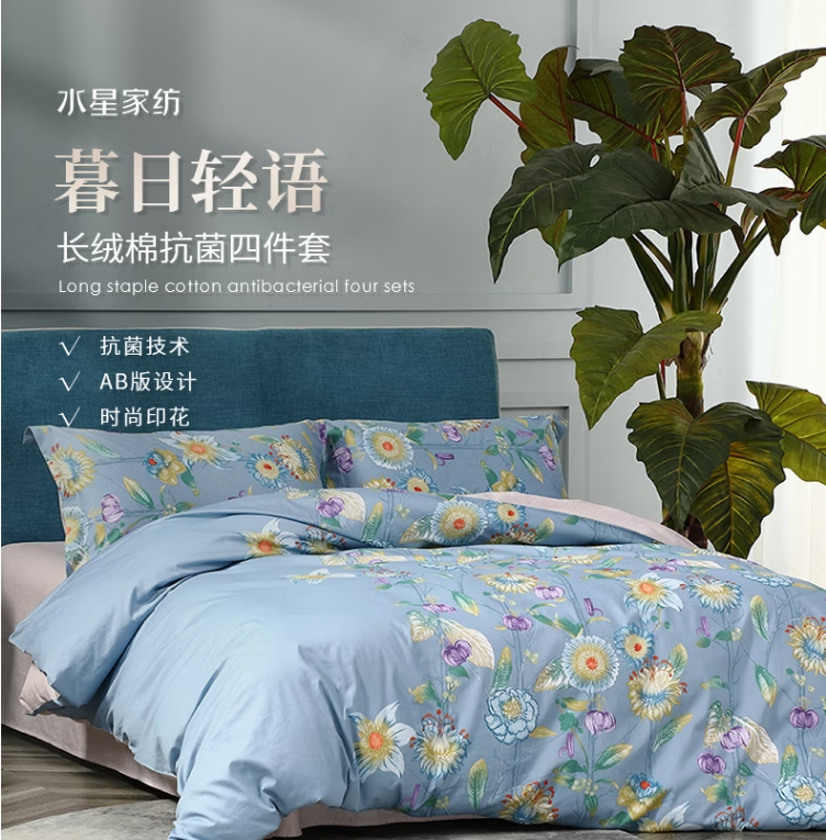 水星家纺 暮日轻语长绒棉抗菌四件套 1.5m床 200cm×230cm 118723