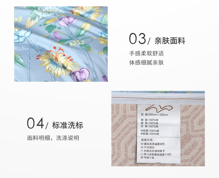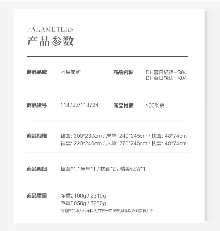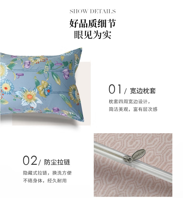 商品名称:水星家纺 暮日轻语长绒棉抗菌四件套 1.5m床 200cm×230cm 118723