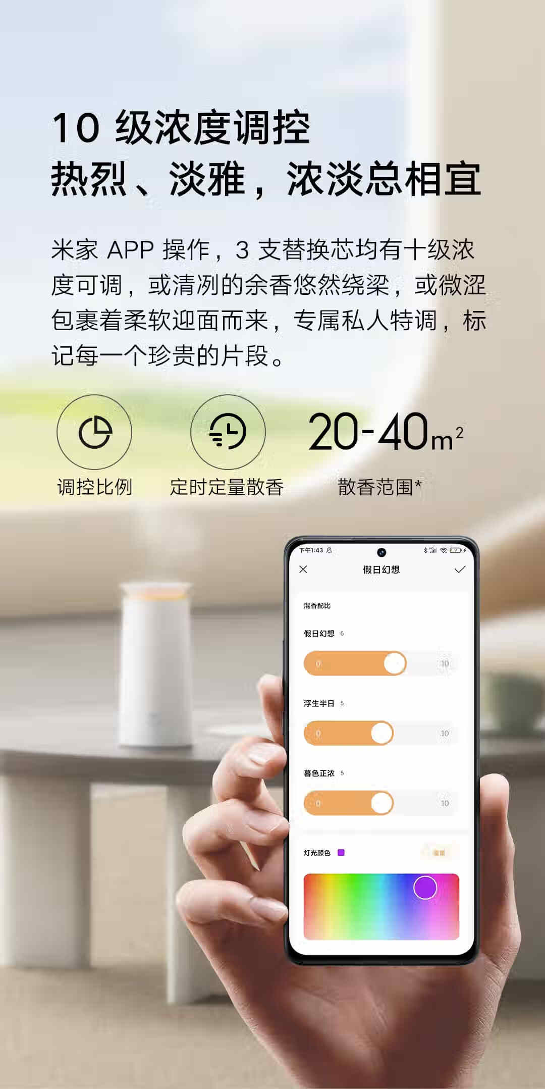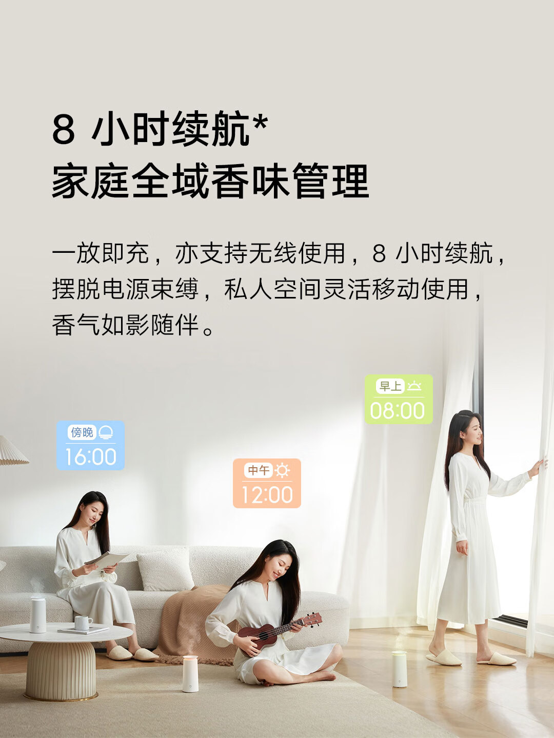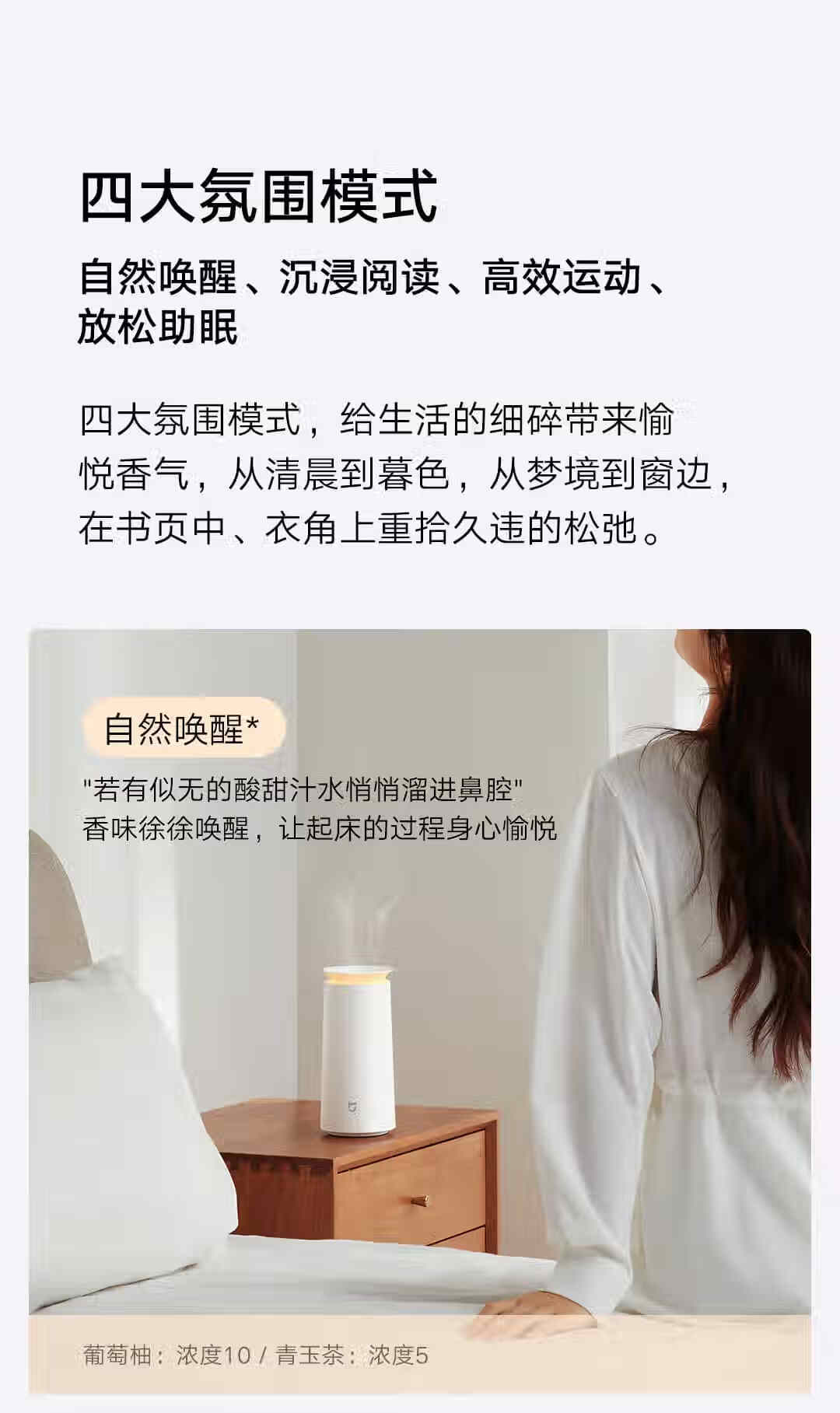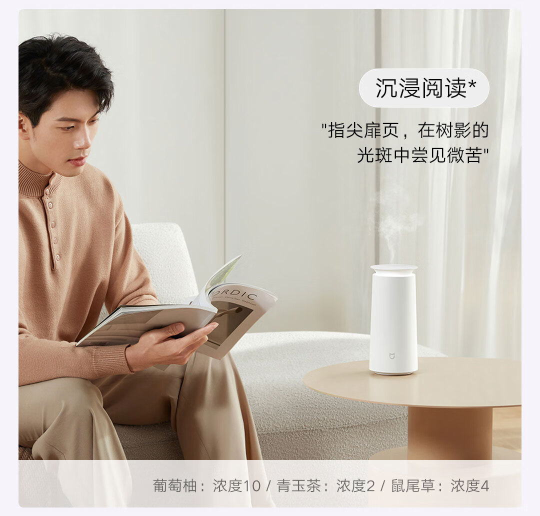 包装清单 :调香机*1、调香机替换芯*3、充电底座*1、充电线*1、适配器*1、说明书(含三包凭证)*1