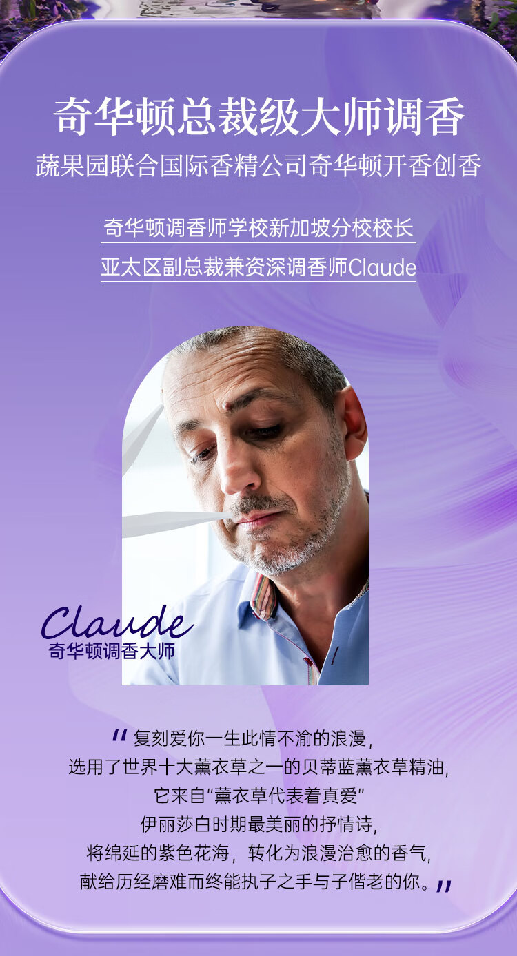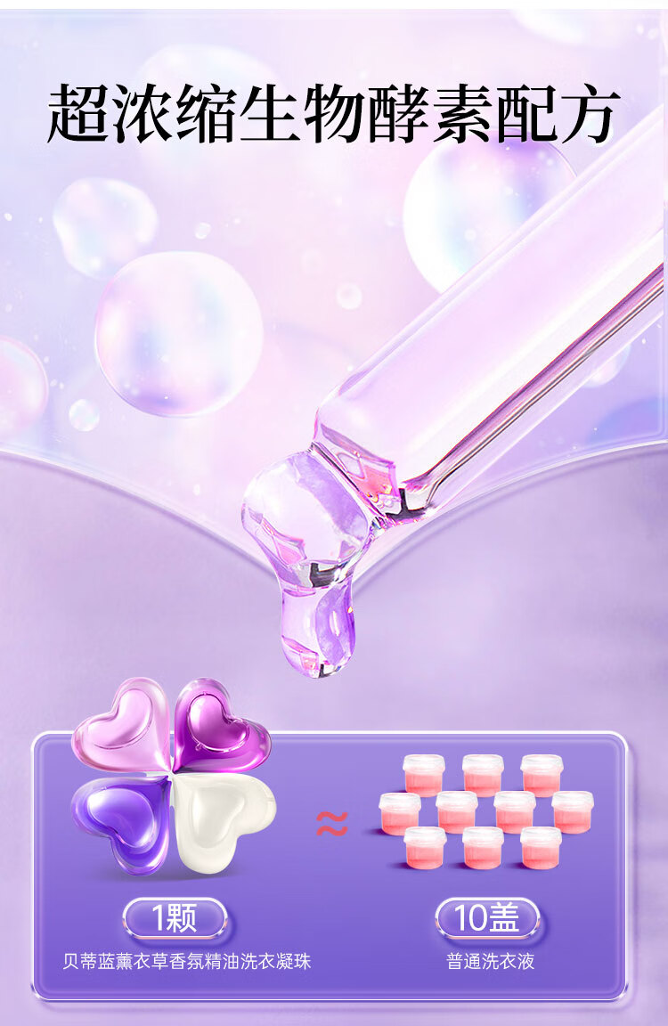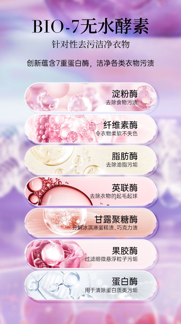 主要成分 :多种表面活性剂、蛋白酶、脂肪酶、薰衣草精油、植物精华